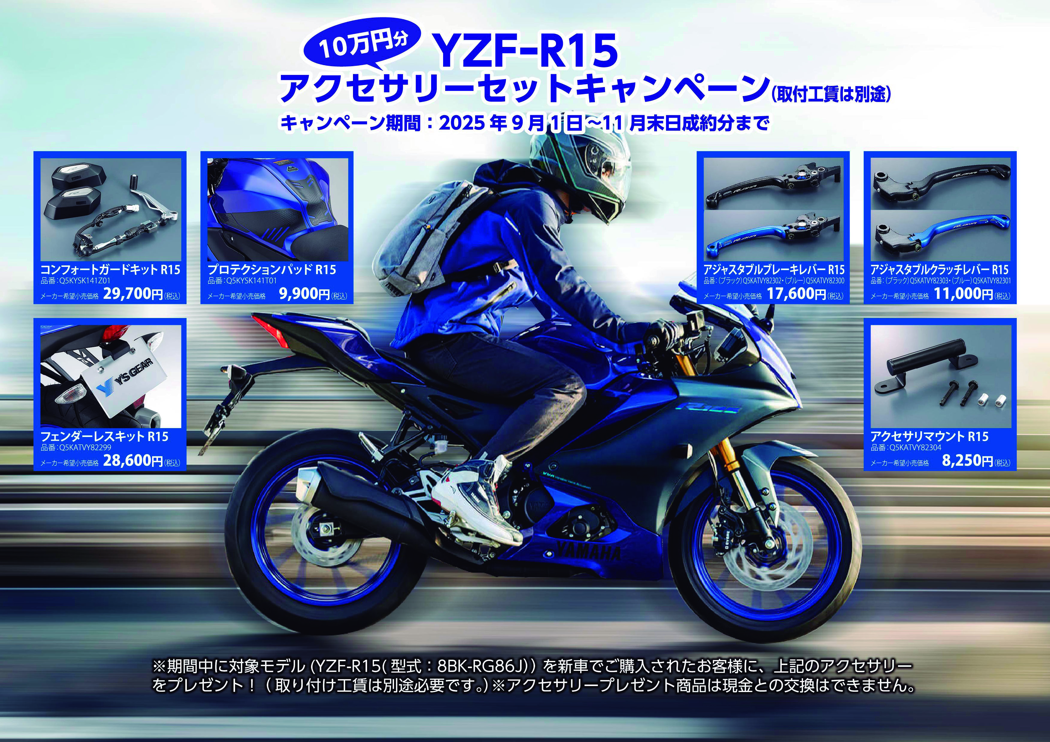 2025年9月1日(月)~11月30日(日)の期間中にYZF-R15 をご成約いただいたお客様へ、